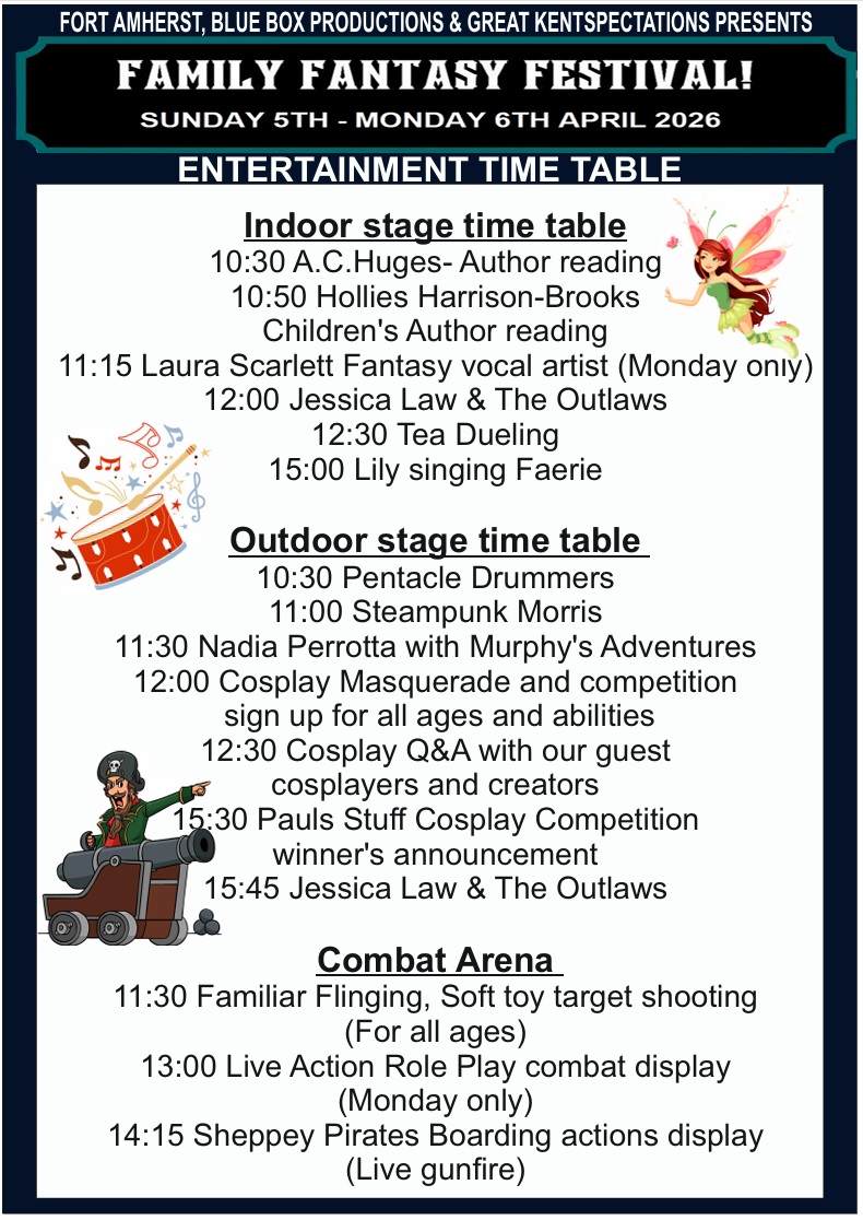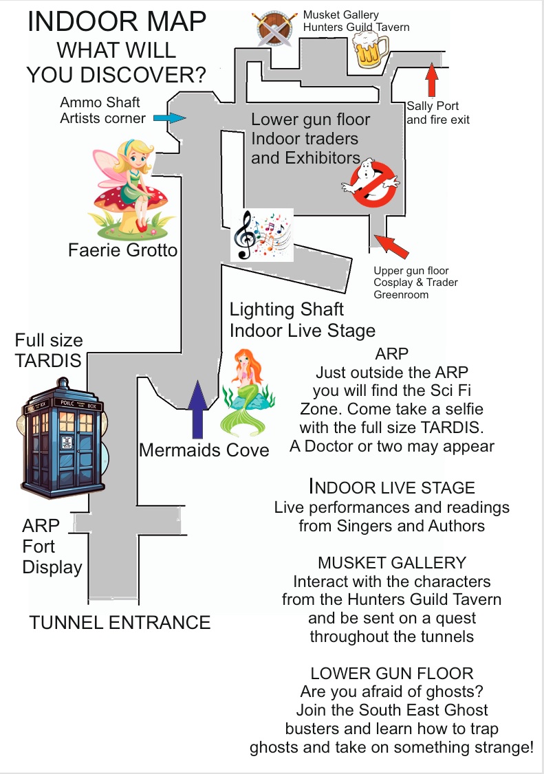 On Easter Sunday and Monday, the historic tunnels of Fort Amherst will be transformed into a child-friendly fantasy world of make believe and science fiction. The tunnels will be home to a spectacle of fairies and goblins, Star Wars characters, Pirates of the Caribbean, Doctor Who players, Fantasy Creatures and Dragons, and other exciting characters.